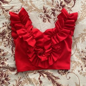 Off-shoulder Ruffle Crop Top
