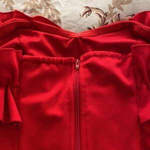 Ruffle straps can go off the shoulder or on the shoulder