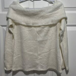 Off white/beige off shoulder cowl neck sweater. Fuzzy material. Good condition.