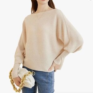 Soft blush-beige knit top with a subtle textured finish and relaxed dolman-style sleeves. Features a wide neckline and an easy, drapey silhouette that’s flattering and comfortable. Effortlessly polished for everyday wear. Details: Soft blush / nude / beige tone Subtle textured knit Wide neckline Dolman-style sleeves Relaxed, flowy fit Lightweight and breathable Size small Great used condition - notice one small snag as pictured Perfect for: Casual workwear Everyday outfits Travel and layering Pairing with jeans, trousers, or skirts A versatile neutral top that works year-round and fits seamlessly into a capsule wardrobe. ✨ Easy, comfortable, and timeless ✨