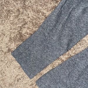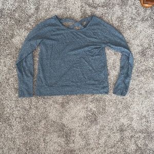 Gently loved sweatshirt with thumb holes. The material is soft but not very thick. Super comfortable and have thumb holes in the sleeves! Amazing for working out or lounge wear. The size is a L or XL but fits like a L.