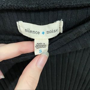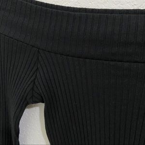 Off the shoulder ribbed top w/ long sleeves and slits at wrist.