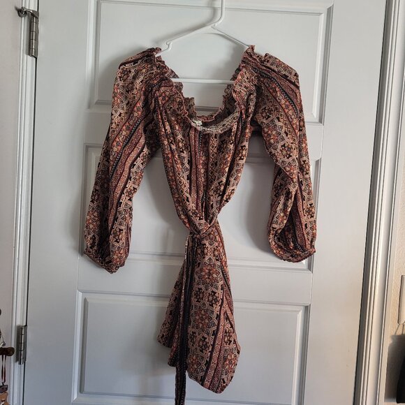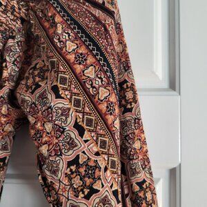 I have only worn this a few times and I got SO many compliments! It has a matching belt with tassels. Sleeves go below the elbows.