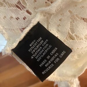 NWOT off-white infinity scarf. Beautifully detailed pattern. This was a gift, & it’s very pretty, but I’m not a scarf person usually. I hope someone else can enjoy it! :)