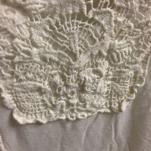 This piece is so beautiful! The lace accent gives it a feminine feel, it looks great with anything. 3/4 length sleeves, and high-low waist! In perfect condition.