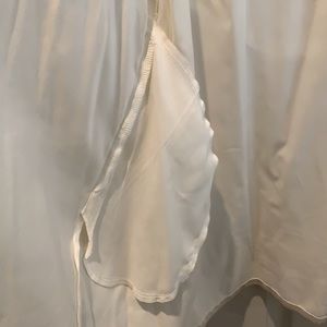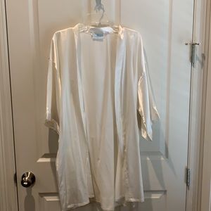 Off-white satin robe. Large. Has one pocket on right side and inside ties....NWOT... Robe has never been worn