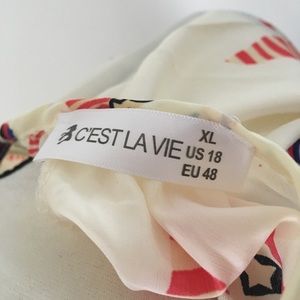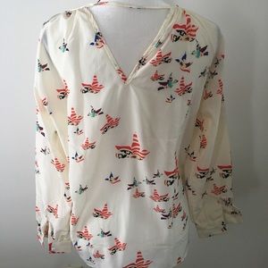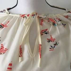 Adorable sheer off-white blouse with a tie above the bust. Bird pattern with red, blue, and brown colors. Like new!! In a smoke free home. It is a XL (Asian) but is a medium in U.S.