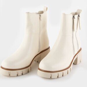 Off-white/bone, chunky, double zip chelsea boot by Mia size 10