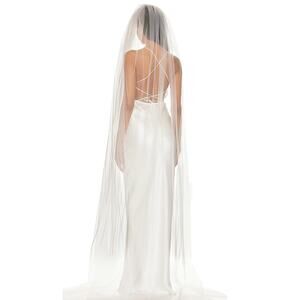 Ofrenda Studio Faculty Plain Tulle Veil in Off-White features a luxurious cathedral-length design with a sleek gold comb for secure, elegant wear. Handcrafted from airy tulle, this timeless bridal accessory adds a refined, minimalist finish to any wedding look.