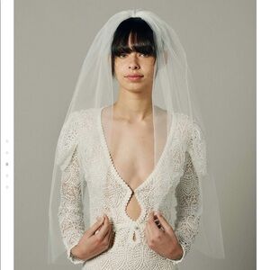 Worn once for about an hour at my wedding. No imperfections but will need to be steamed. Beautiful veil :)