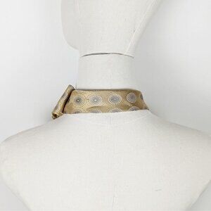 Elevate your style with this hand-stitched gold formal ascot for women. Crafted with precision and attention to detail, it's a one-of-a-kind accessory that adds a touch of sophistication to any outfit. Stand out at your next event with this unique piece that seamlessly combines elegance and individuality.