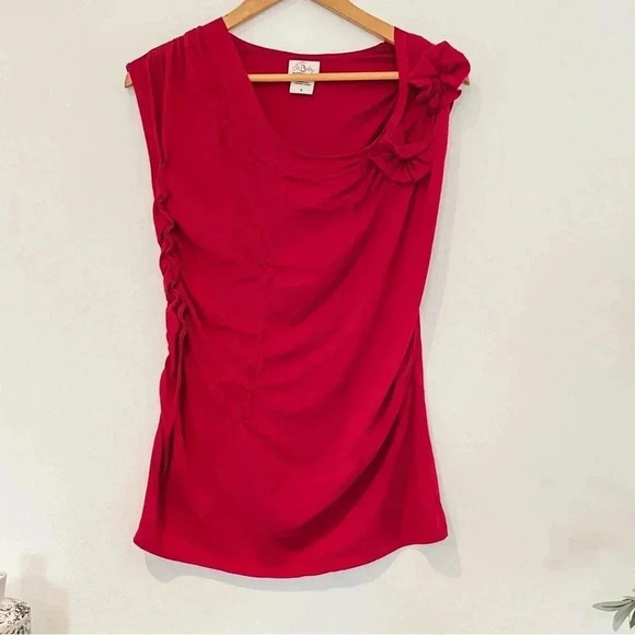 Oh Baby Maternity size small pink short sleeve ruched shirt with flower detail