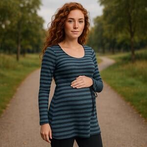 Oh Baby Motherhood Maternity Sweater Size Medium Blue Striped Sheer Womens NEW