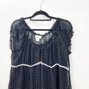 Oh Baby! Motherhood Maternity XL Womens Black Polka Dot Babydoll Blouse Top