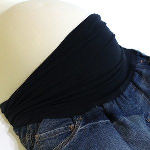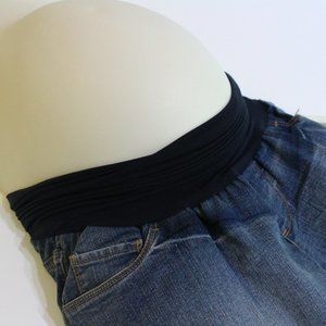 These maternity blue jean short have a secret fit belly panel that can be worn completely over belly, mid belly or under belly.