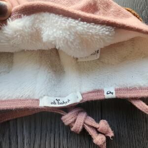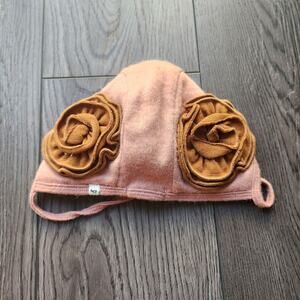 Soft, fleece lined, warm,pilot cap style bonnet. Flower appliques on top. Absolutely gorgeous!