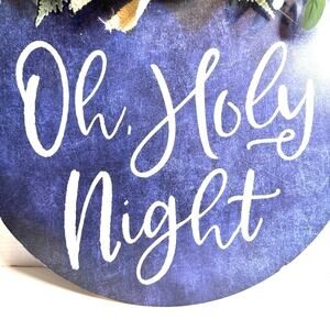 Oh Holy Night Floral Wooden Door Hanger Wall Sign Christmas Decor Holiday Bow