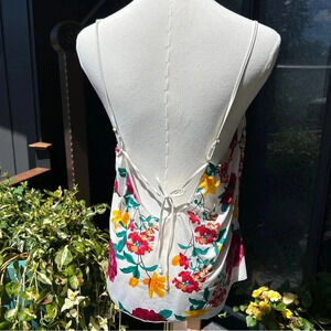 Oh La La Cheri Paris Floral Tie Back Lace Deep V-Neck Camisole Tank L/XL