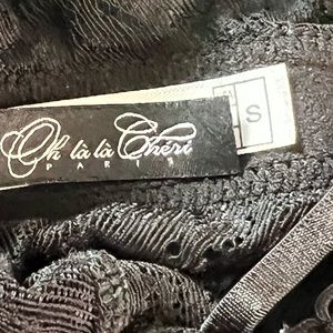 Oh La La Cheri Paris Lace Teddy lingerie. Snap crotch. Adjustable straps. 95% nylon 5% spandex. Approximate measurements: