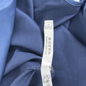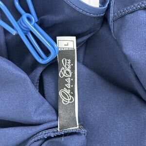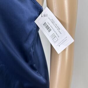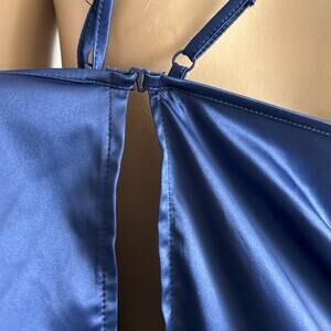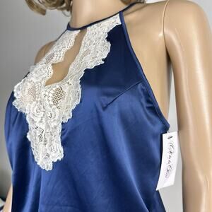 Listed is a gorgeous Oh La La Cheri satin camisole, royal dark blue and cream lace accents, halter style neck with keyhole, hook and loop flutter back.