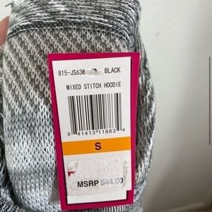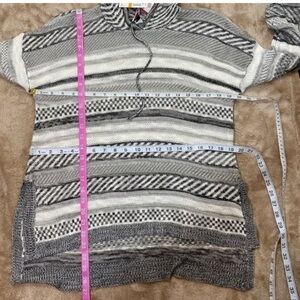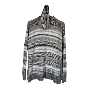 Oh MG: Hooded Knit sweater, gray, black, and white striped NWT