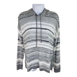 Oh MG: Hooded sweater, gray, black, and white striped long sleeve Size X Small Fabric 100% Acrylic