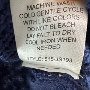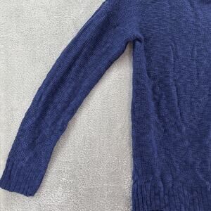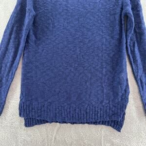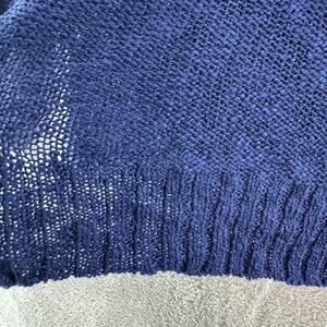Oh MG Open Knit Sweater Womens L Blue Crew Neck Pullover Long Sleeve Side Slit