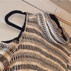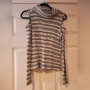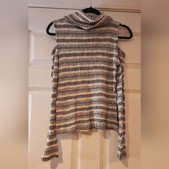 Oh MG black and white knit cold shoulder turtleneck top S