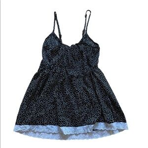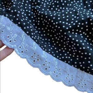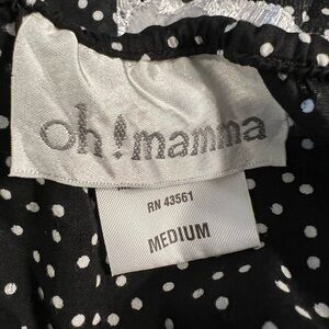 Oh! Mama Black and white polkadot spaghetti strap maternity top. Super cute black and white polkadot design. Adjustable spaghetti straps. Ties and back for the perfect fit. Lace detail on bottom seam and a long chest. Women’s size medium maternity. Excellent condition. Measures approximately 15 inches flat across chest from armpit to armpit and approximately 27 inches in length (length could vary depending on ).