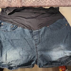 Oh! Mamma Maternity Blue Jean Shorts with Elastic Waistband