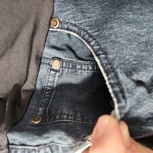These Oh! Mamma jean shorts feature a comfortable elastic waistband, perfect for a relaxed fit. The medium to dark blue wash and cuffed hems add a touch of classic style, while the distressed detailing gives them a trendy, worn-in look. very stretchy and comfy! real pockets!