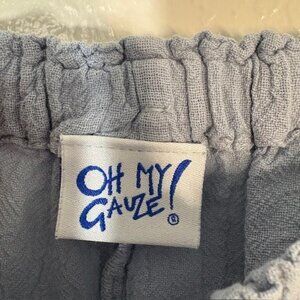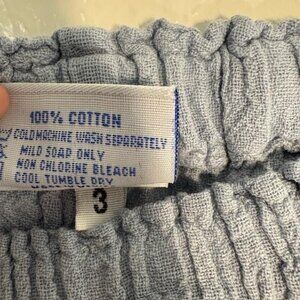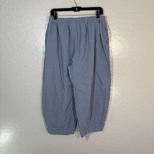 Oh My Gauze Pants Womens 3 Light Blue Crinkle Cotton Elastic Waist Cropped Capri