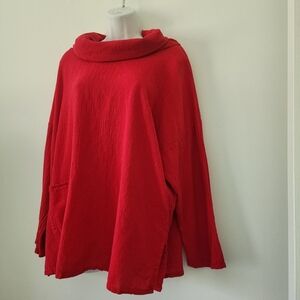 Oh My Gauze! Tortus Cowl Neck Lagenlook Tunic Top Red One Size