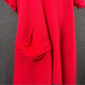 Oh My Gauze XXL Red Pockets Lightweight Boho Lagenlook Asymmetrical Tunic Artsy