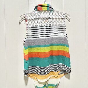 Oh My Julian Sheer Sleeveless Shirt Lace Stripe Colorblock Size Large