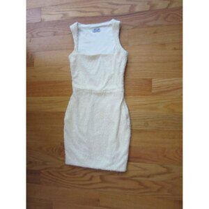 The Oh Polly Alsace dress showcases an elegant bodycon silhouette adorned with delicate embellishments. Its timeless white hue and square neckline offer a sophisticated appeal, suitable for formal occasions or evenings out. The mini length highlights the legs, while the fitted design accentuates the figure, making it a stylish choice for the discerning dresser. So sorry my pictures don't do this dress justice. Lots of stretch to this dress. In nice shape in size 0.