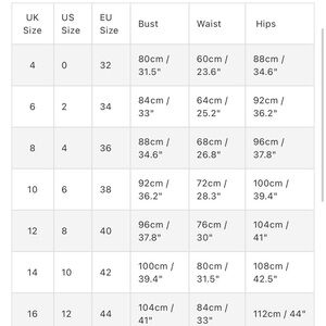 Size chart in photos