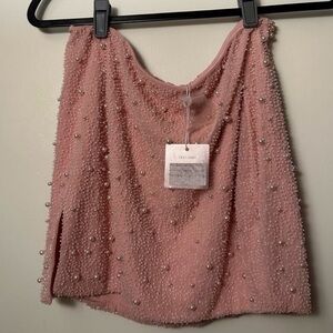 Chic blush mini skirt with delicate beadwork. Perfect for a stylish look.