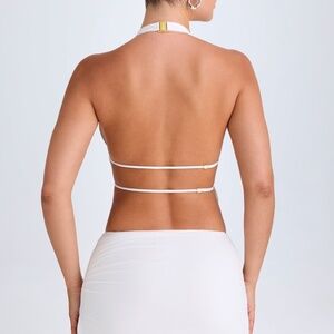 Oh Polly Cut-Out Ruched Halterneck Crop Top in White 2