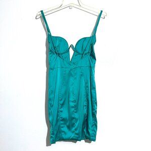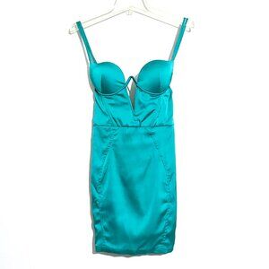 Oh Polly Double Life Underwired Satin Mini Dress Turquoise