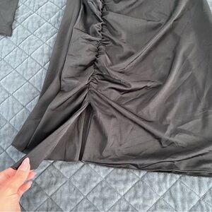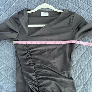 Oh Polly Dress Women’s 2 Rea Long Sleeve Asymmetric Mini black Ruched B27