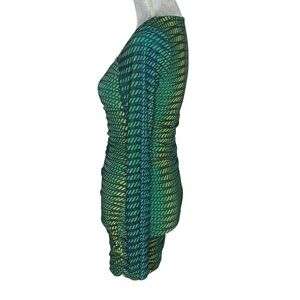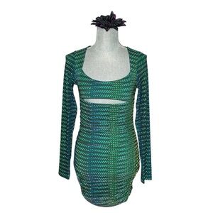 Oh Polly Dress Womens Mini Green Striped Print Bodycon Long Sleeve Cut Out Sz 8