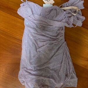 Oh Polly Embellished Corset Kaftan Mini Dress in Lilac 2 / Plus Cup