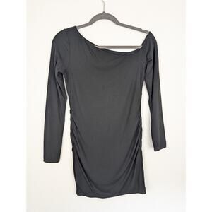 Oh Polly Fia Dress Ruched Off Shoulder Modal Mini LBD Sexy Glam Black Size M