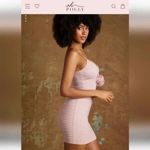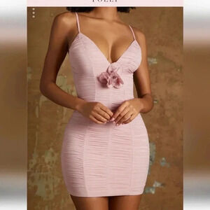 Oh Polly NERMINPlunge Neck Mini Dress with Flower Detail in Mauve size 10 NWT