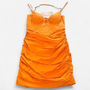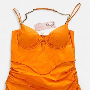 Oh Polly Orange Corset Mini Dress ⚡ Gold Chain Strap Y2K Clubwear size 4 new
