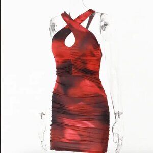 Oh Polly Out Of This World Red Orange Ombré Ruched Bodycon Mini Dress 4 NEW Tags
