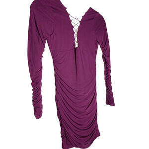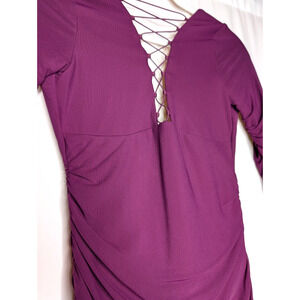 Oh Polly Pragma Long Sleeve Lace Up Ruched Bodycon Mini Dress Wine Purple Size 2
