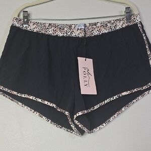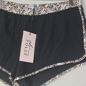 Oh, Polly Praia Mini Black Shorts with Animal Print Trim Size Large NwT.