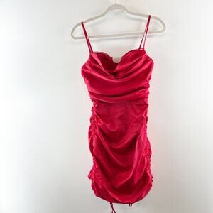Oh Polly Ruched Satin Mini Bodycon Dress Red 2